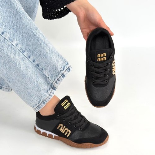 Marje Siyah Cilt Bağcıklı Spor Ayakkabı
